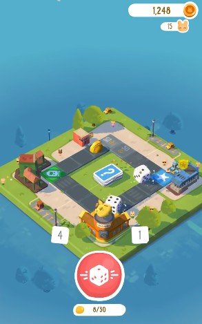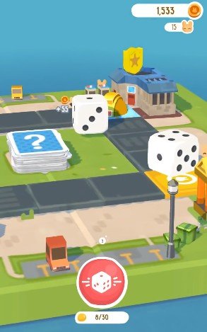 Основная цель в Board Kings — развивать свой город, улучшая здания и зарабатывая монеты. Игровое поле — это доска, разделённая на клетки, по которым вы передвигаетесь с помощью кубиков. Каждый бросок даёт случайный результат, и именно от этого зависят дальнейшие события.