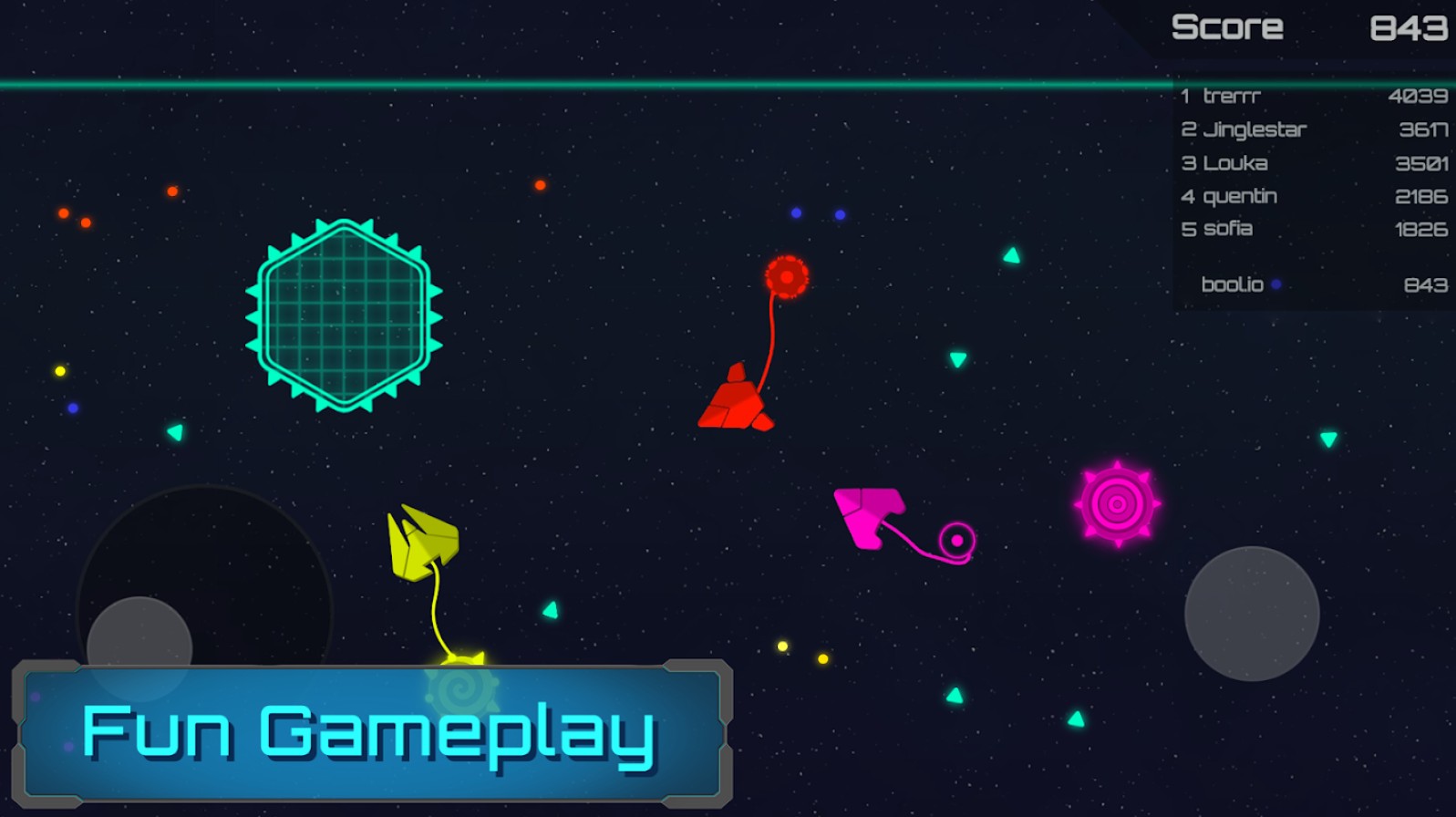 Для тех, кто хочет скачать Bool.io бесплатно на Android, мобильная версия игры предлагает тот же набор возможностей, что и десктопная. Управление адаптировано под сенсорные экраны: вращение и ускорение выполняются простыми свайпами, а отклик корабля остаётся плавным и точным.