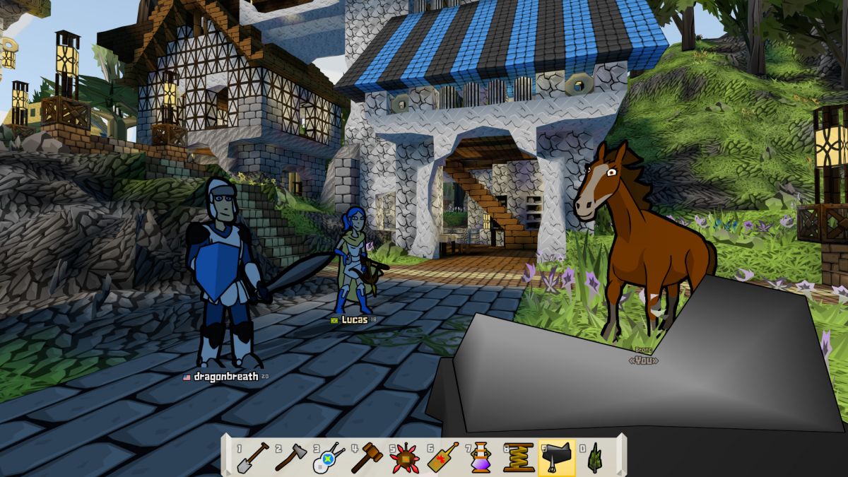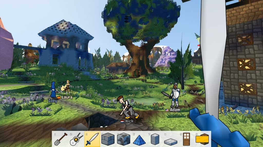 Как и в лучших традициях песочниц, здесь доступна система крафта и возведения построек. Игрок может собирать ресурсы, создавать предметы и строить всё — от простых домиков до огромных замков и целых городов. Механика возведения достаточно гибкая: каждый блок можно разместить вручную, что открывает простор для творчества. - Сражения
