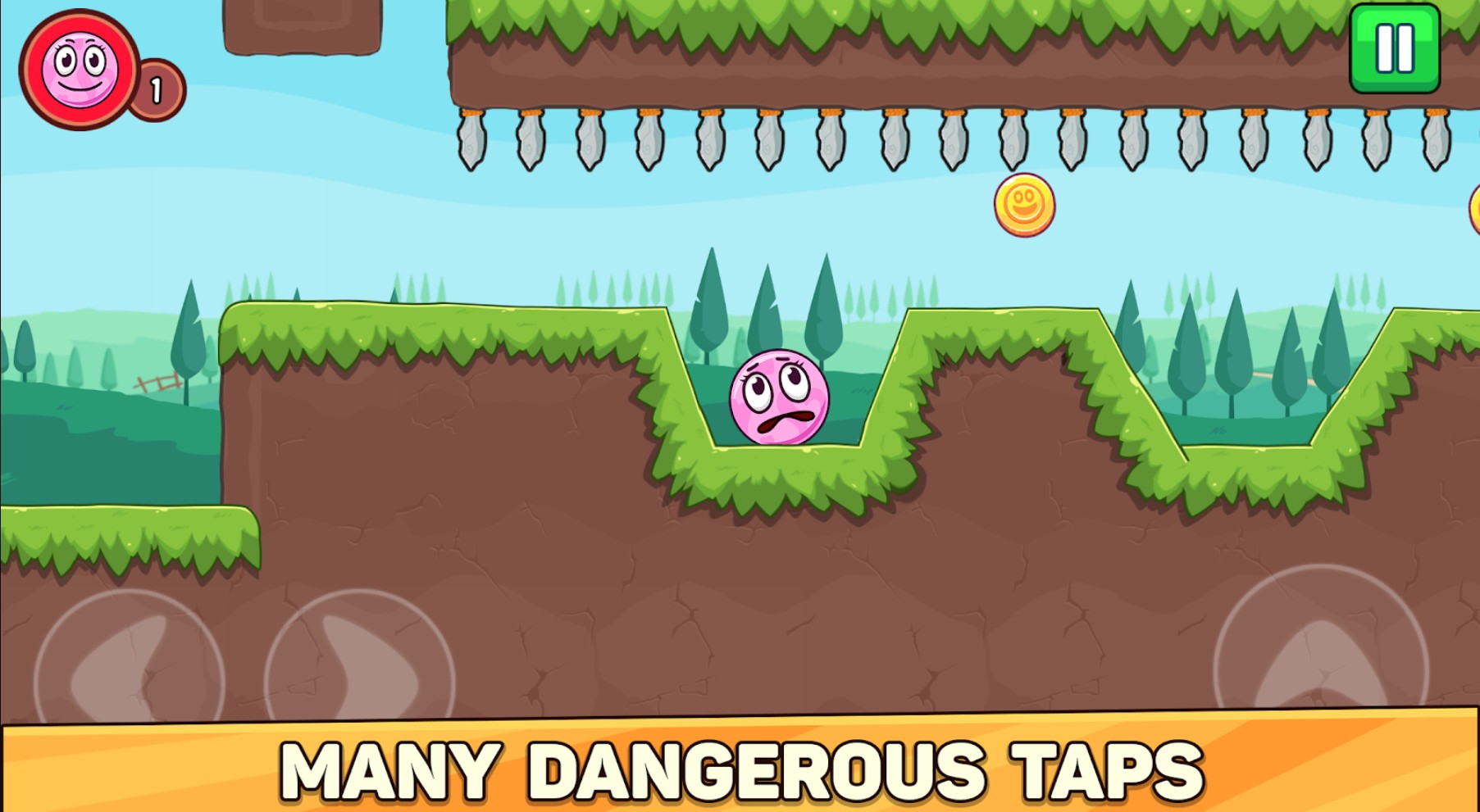 - Физика шара – управление простое: движения влево, вправо и прыжки, но динамика шарика добавляет ощущение живости.