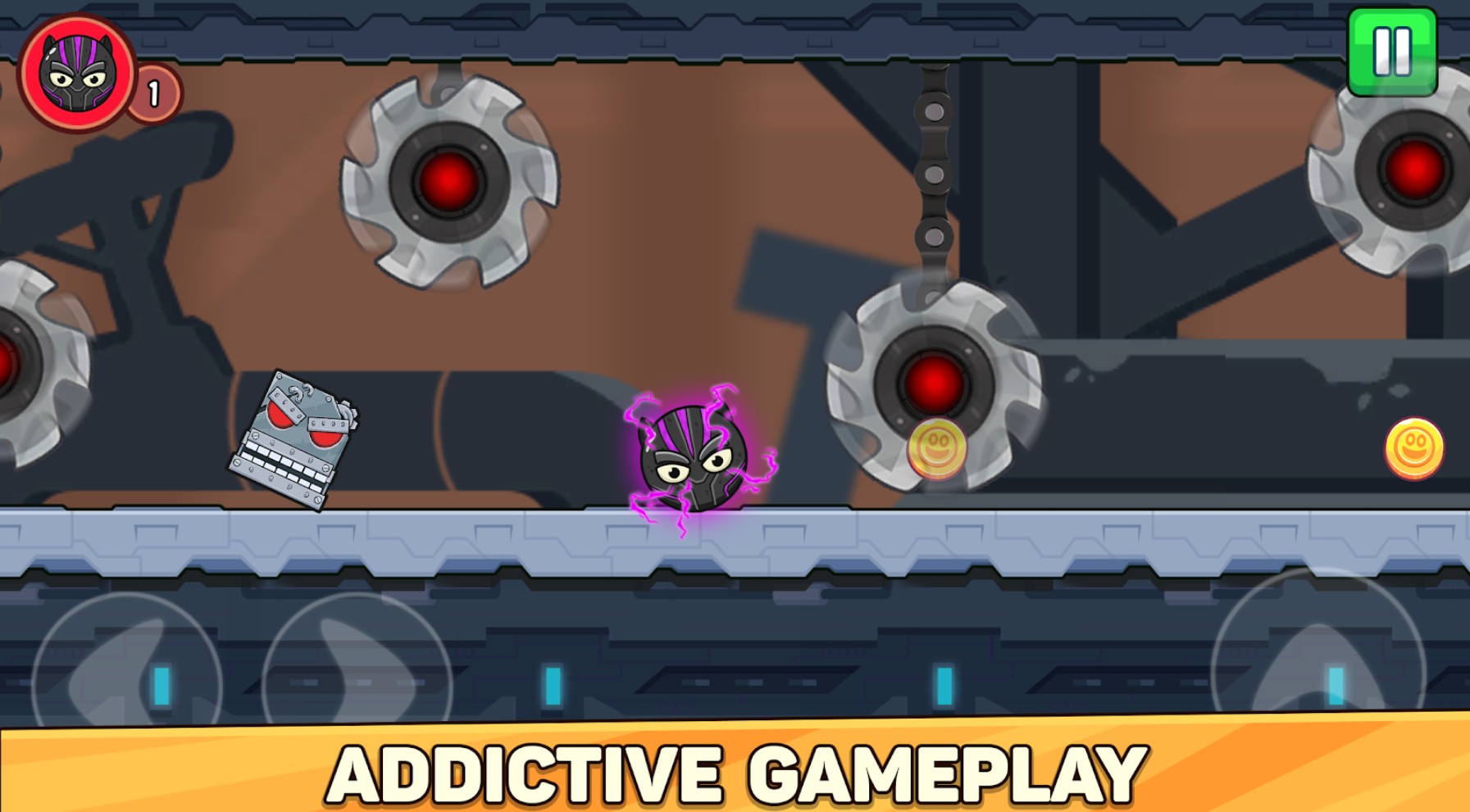 - Враги – механические роботы и другие противники, которых можно уничтожать прыжками сверху или обходить.